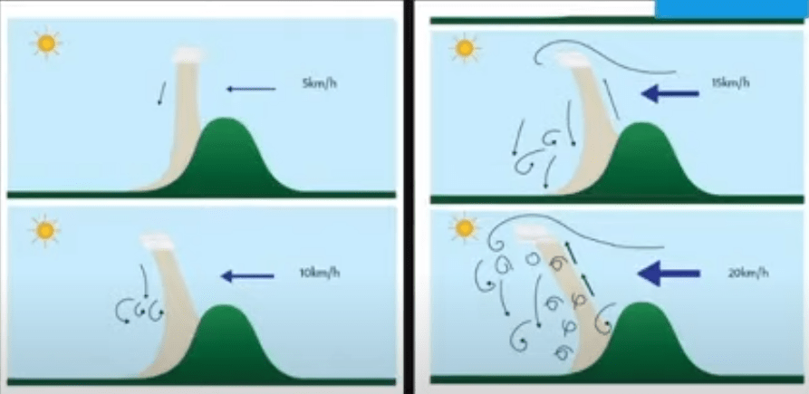 4-Tepenin şekli, Konik yapıdaki yükseltilerin rüzgarüstünde iki yana ayrılan rüzgarın rüzgaraltında tekrar birleşmesi (convergence) ile bir kaldırıcı oluşturma ihtimali vardır.