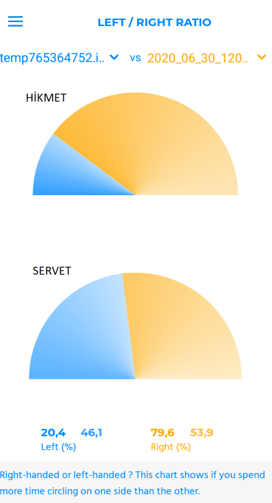 İlgimi çeken bir diğer grafik ise termiklerin ne kadarını sağdan ve soldan döndüğünü gösteren grafik idi. Ben termiklerin % 53,9’unu sağdan %46,1’ni ise soldan dönmüşüm.