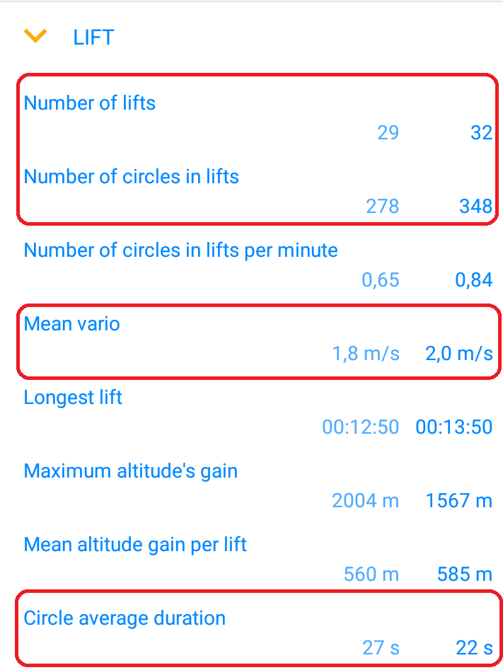 Tırmanma sekmesinde ise Ne kadar dar dönmeliyim ? makalesinde bahsettiği ortalama dönüş sürelerini en alt kısımda görüyoruz. 27 sn’lik dönüş süresi ile fransa ligine göre ortalama bir pilotum:) Hikmet’in ortalama dönüş süresi ise 22 sn. Bu dönüş süresi ile Fransız ligindeki en iyi pilotlar ile yarışabilecek bir tekniğe sahip olduğunu gösteriyor.