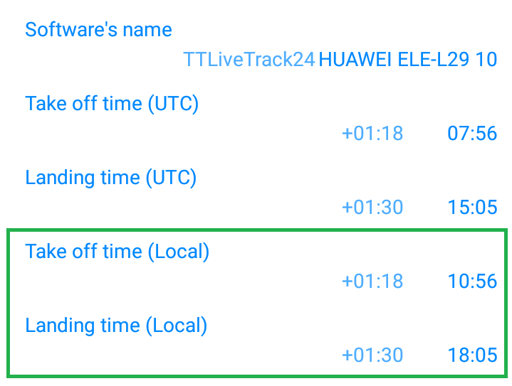 Aşağıda yeşil kutucuk ile işaretlenmiş bölümde yerel saate göre Hikmet 10:56‘ da kalkış yaparken ben ondan +1 saat 18 dk’a sonra kalkış yapıyorum. Fakat inişte de ben ondan 1,5 saat sonra iniyorum.