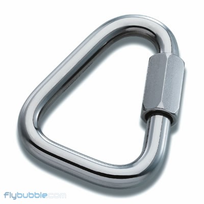 Üçgen kilitli karabinalar yamaç paraşütünde ön ve arka kolonlar ile askı ipleri arasındaki bağlantıyı sağlamak için kullanıldığı gibi daha büyük olanları 5mm kalınlığında olan üçgen kilitli karabinalar çift yedekli harnesslerde ikinci yedeğin harnessdeki omuz bağlantı noktasında da kullanılmaktadır.