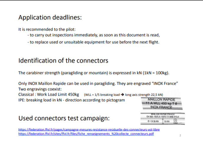 Kilitli karbinalar hakkında yazımı gören bir arkadaşım, Fransız havacılık federasyonunun güvenlik ve teknik komisyonunun hazırlamış olduğu bir bildiriyi gönderdi. Bu bildiride nerede hangi karabina kullanılabilir veya kullanılamaz ve ne kadar süre kullanılabildiğini gösteren son derece ayrıntılı bir tablo hazırlamışlar. Bunu çevirmem vakit alabilir bu haliyle de çoğumuz anlayabilir sanıyorum. Fakat ilerde bu belgeyle ilgili de yazmak istiyorum. Şimdilik olduğu gibi size sunuyorum.