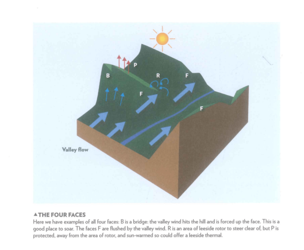1. Yüz F (Flush Face – Rüzgâr Alan Yüz): Bu yüz, vadi rüzgârı tarafından doğrudan süpürülür “yıkanır”. Süzülüş yapmak için iyi bir yerdir.