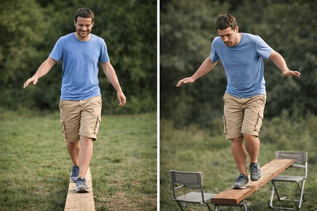Çocukların yapamadığı şey yeni bir beceri değildir. Onlar zaten yürümeyi biliyordur. Hatta az önce aynı tahtanın üzerinde rahatça yürümüşlerdir.